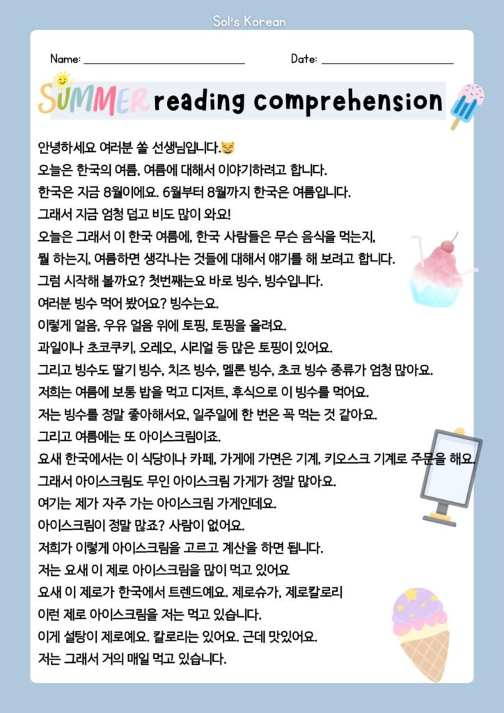 Hi everyone! Welcome back to Sol’s Korean listening practice!